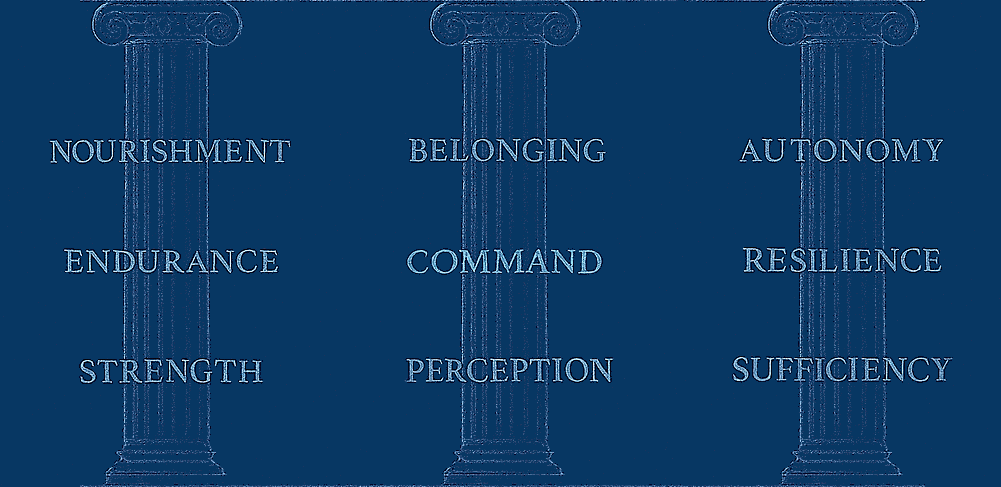 This temple is not built of stone, but of life itself. Its foundation is principle. Its three pillars are physical well-being, mental clarity, and external sovereignty. Its roof is eudaimonia: a life of proportion, balance, and meaning.